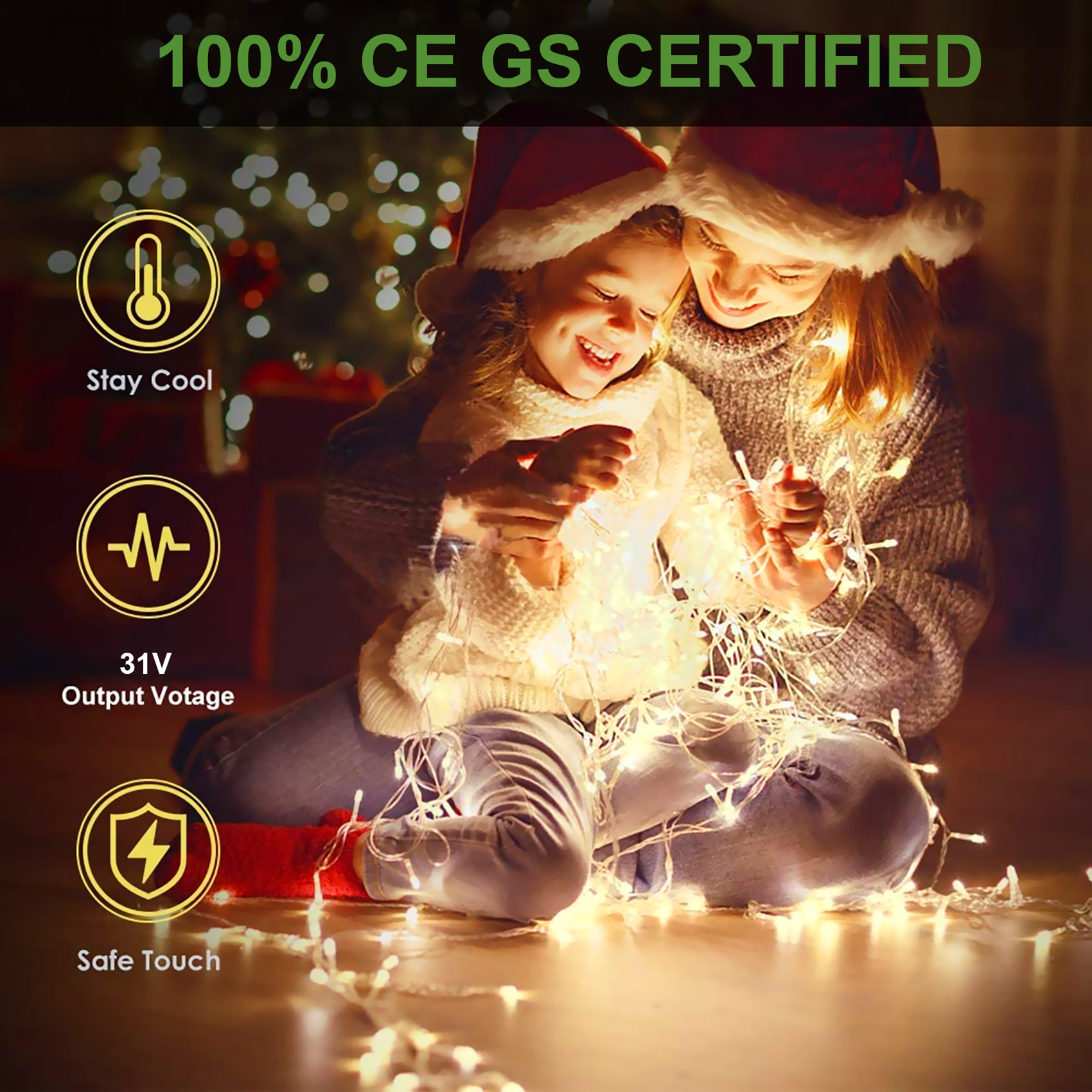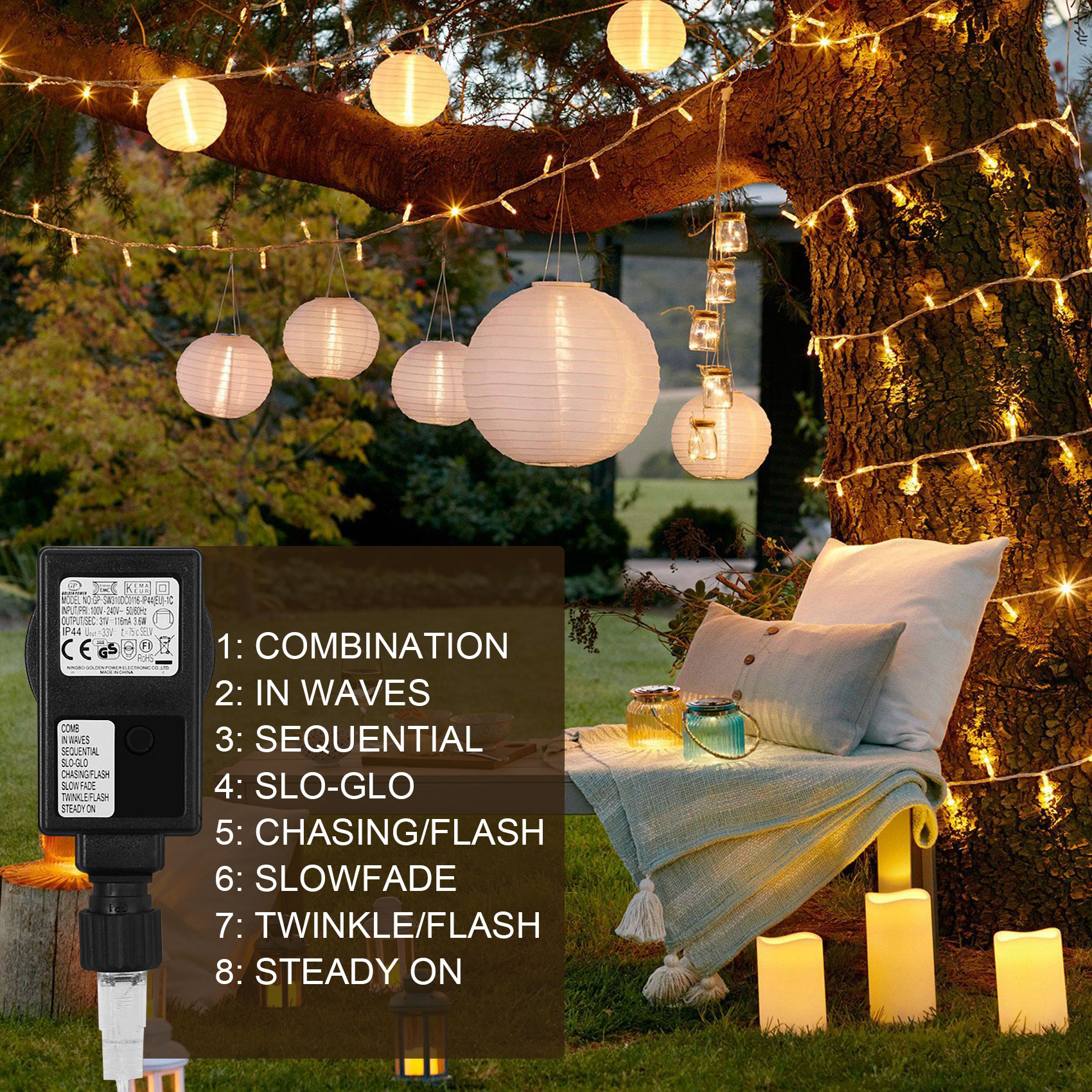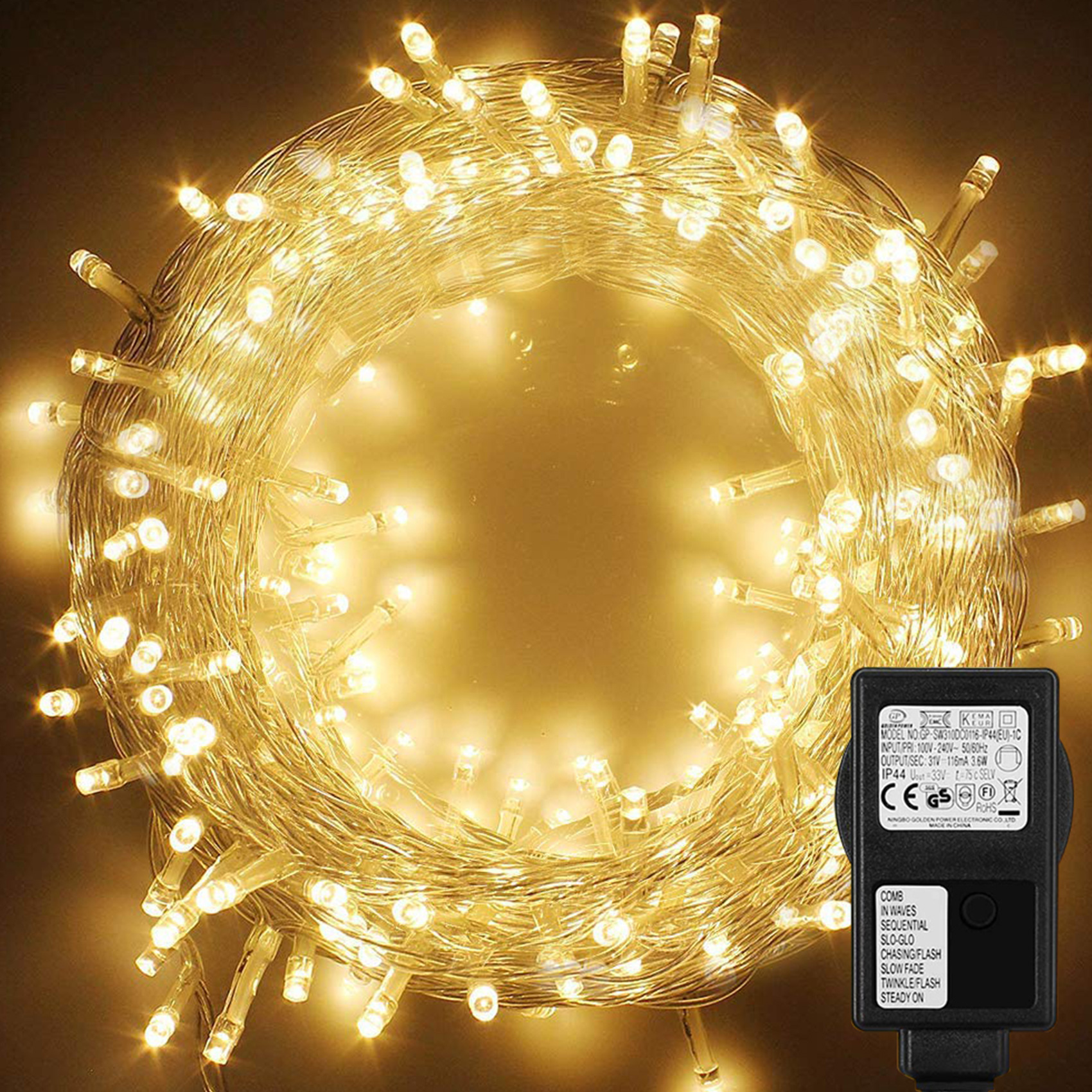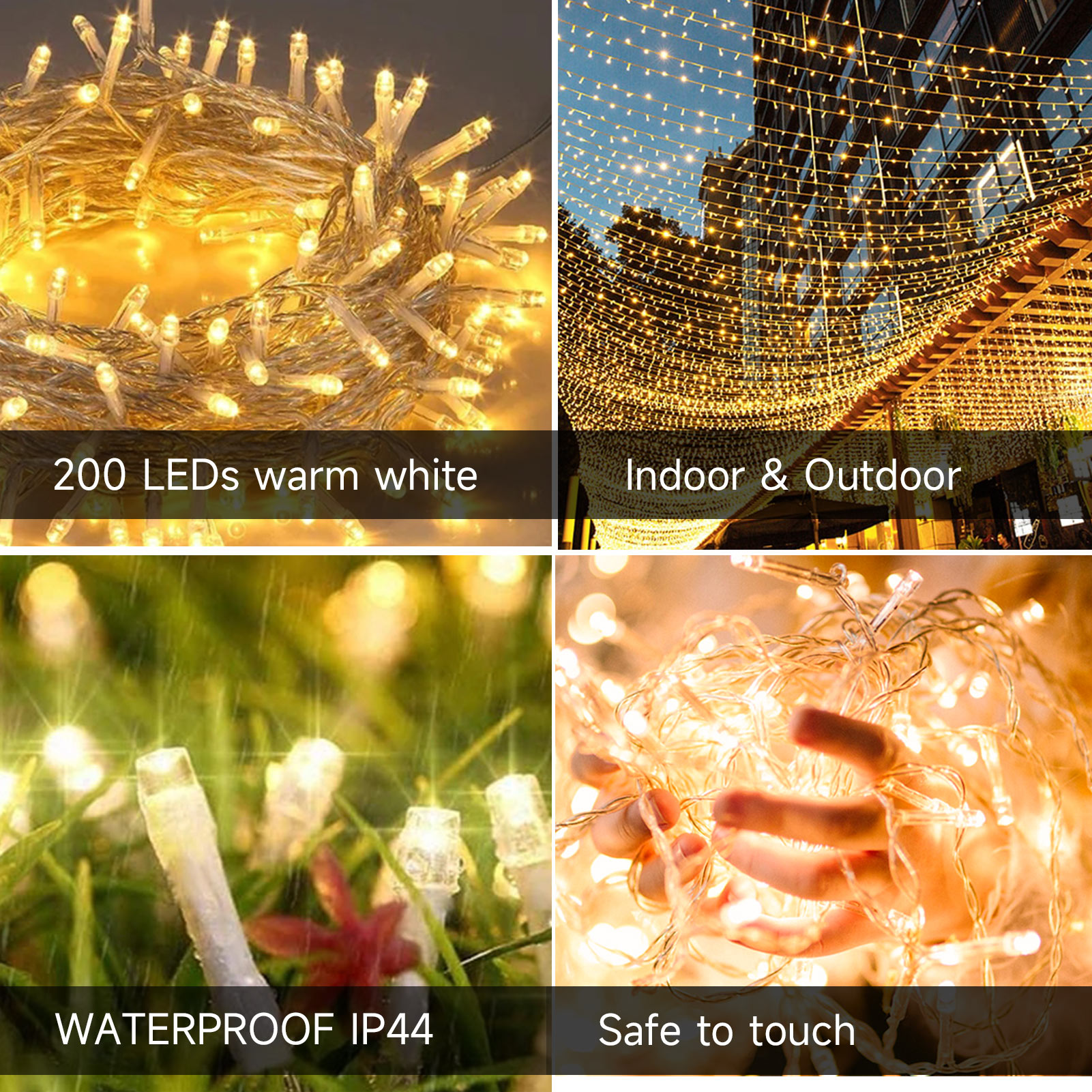 WOWDSGN 20M 200Led LED String Lights with plug, 8 mode, memory function, IP44 waterproof for indoors and outdoors