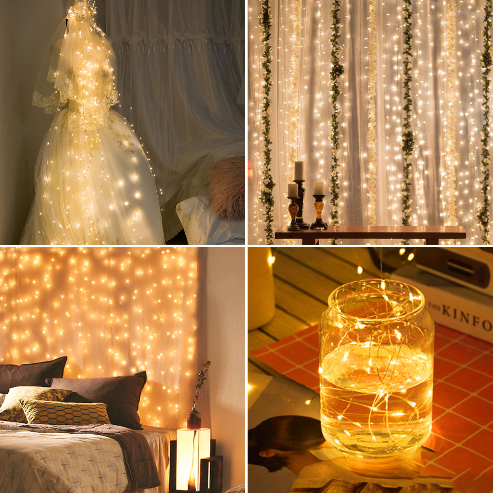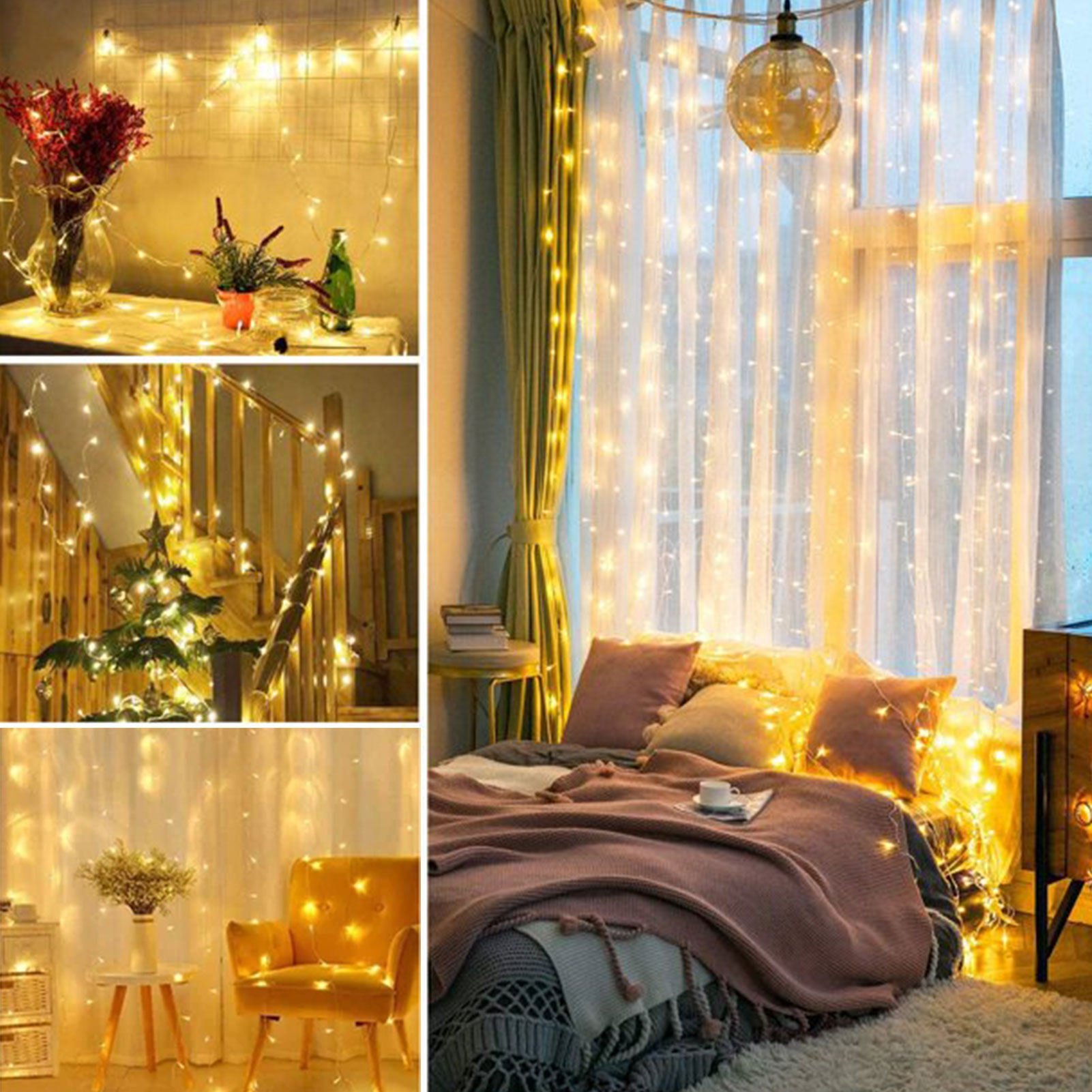WOWDSGN USB LED Curtain Lights 3x3m 300Led Warm White