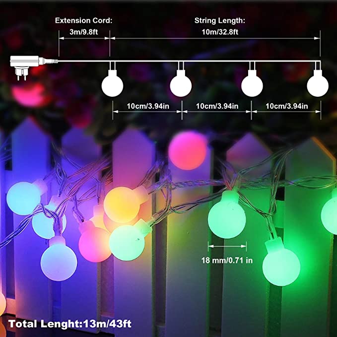 WOWDSGN LED Globe String Lights 10M 100Led Colorful