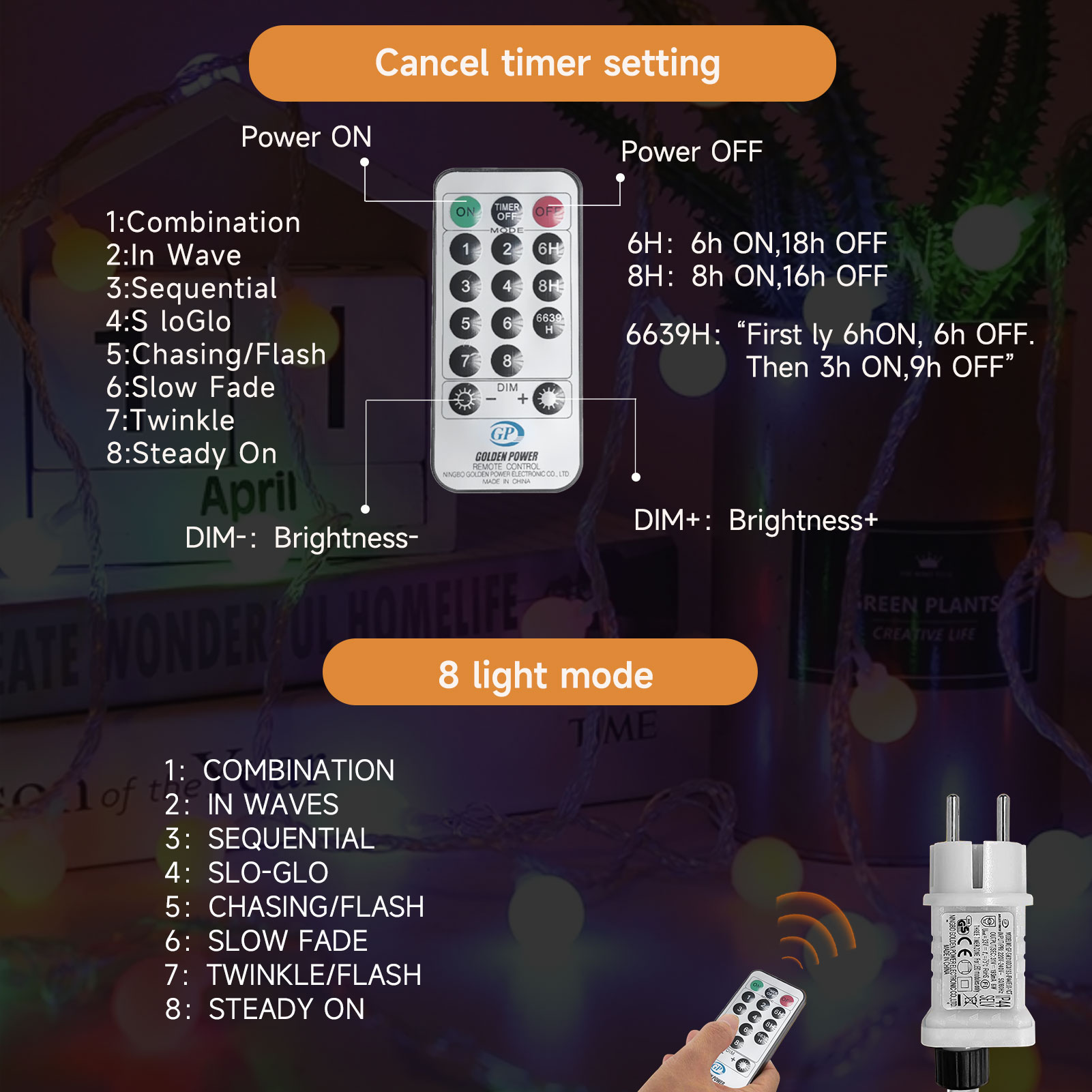 WOWDSGN 10M 100Led Globe String Lights with plug, 8 mode, timer, memory function, IP44 waterproof for indoors and outdoors