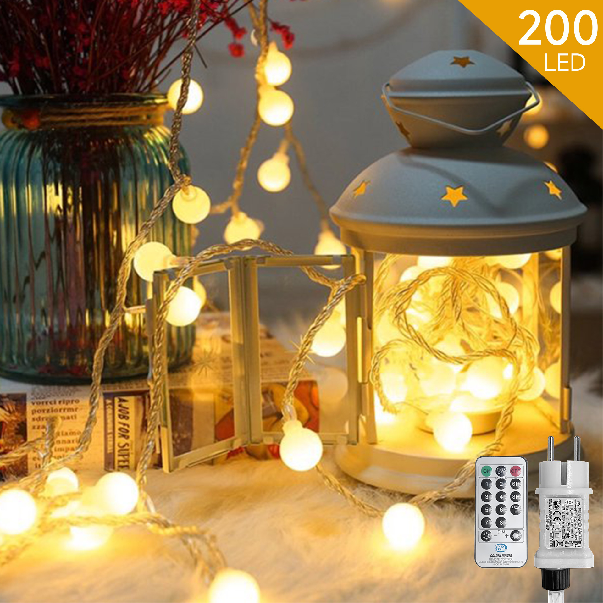 WOWDSGN LED Globe String Lights 20M 200Led